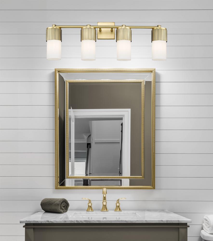 Bolivar - 4 Light - 31 inch - Brushed Brass - White Shade - Bath Vanity Light