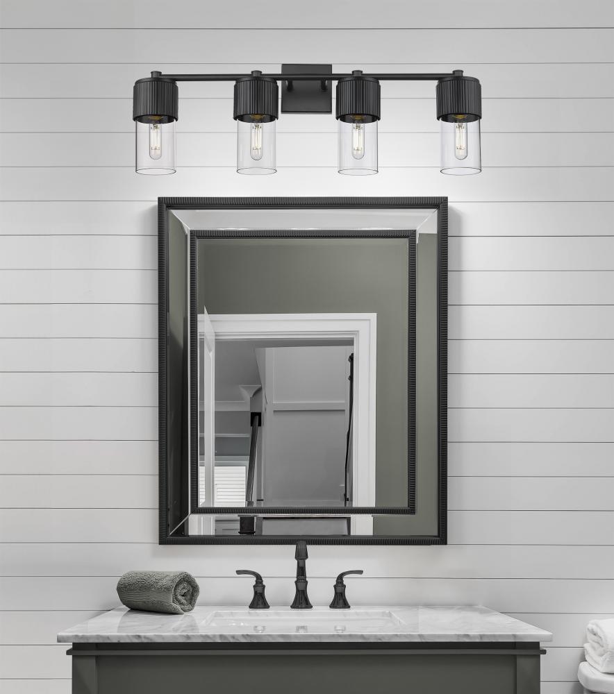 Bolivar - 4 Light - 31 inch - Matte Black - Clear Shade - Bath Vanity Light