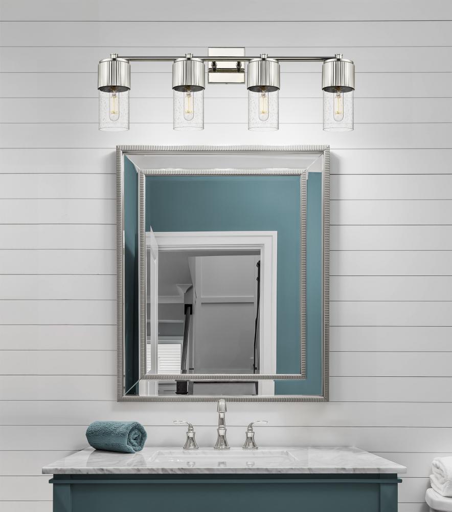 Bolivar - 4 Light - 31 inch - Polished Nickel - Seedy Shade - Bath Vanity Light