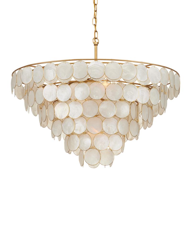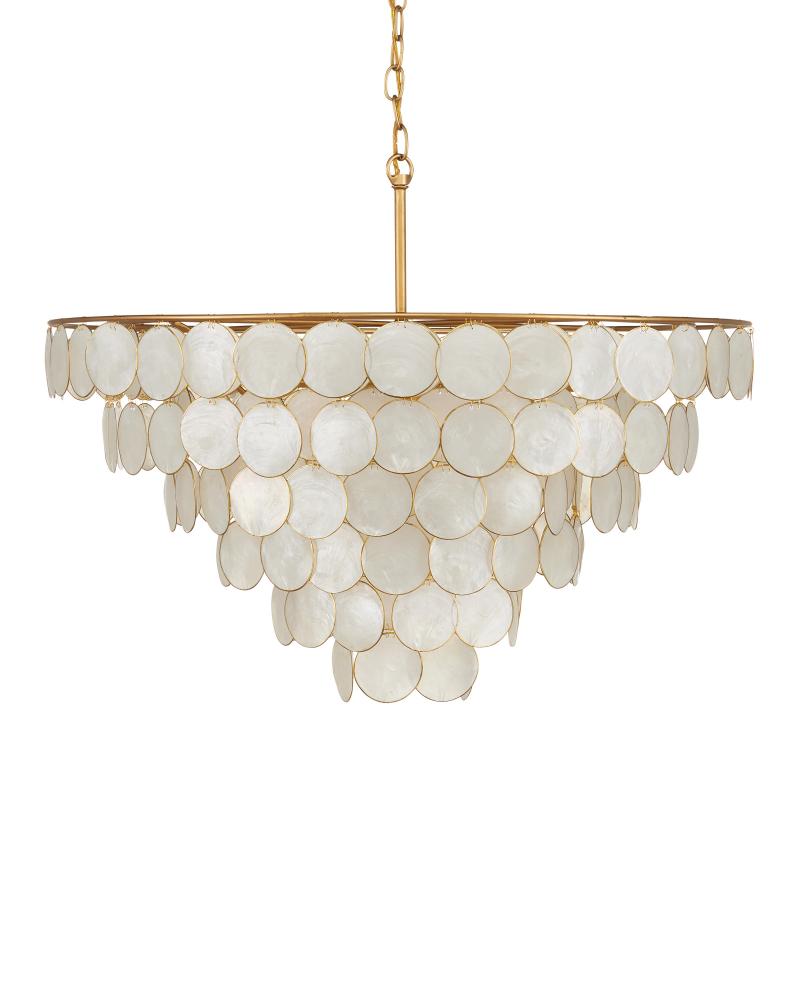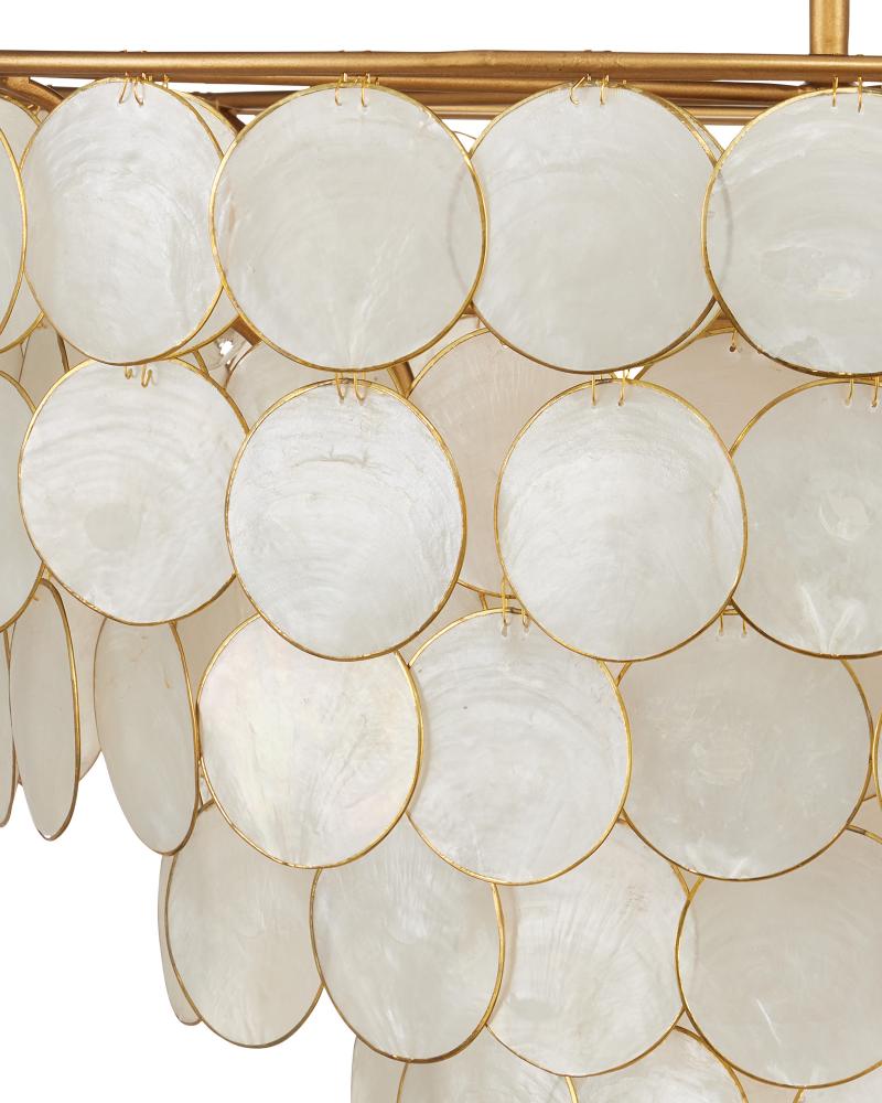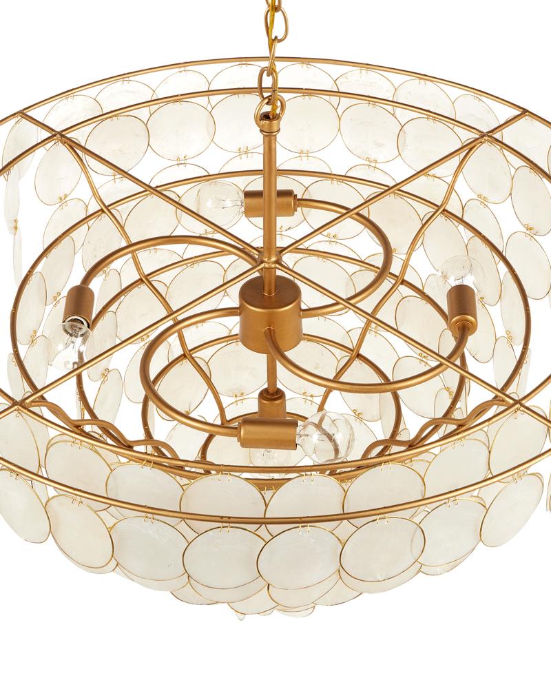 Ethereal in its overall vibe, the Bon Vivant Large Semi-Flush Mount features discs that effervesce with illumination, made of Capiz shells ringed in a decorative metal edge that matches the gold finish on the rest of the fixture. The thinness of the wires that fasten the discs to the frame and to each other is a sophisticated design detail. This gold semi-flush is convertible to a chandelier when the lower canopy is removed. Adjustable from 31" to 99" with use of included chain/rod kit/cable. If your space calls for a longer drop, additional chain/rods/cable is available for purchase.