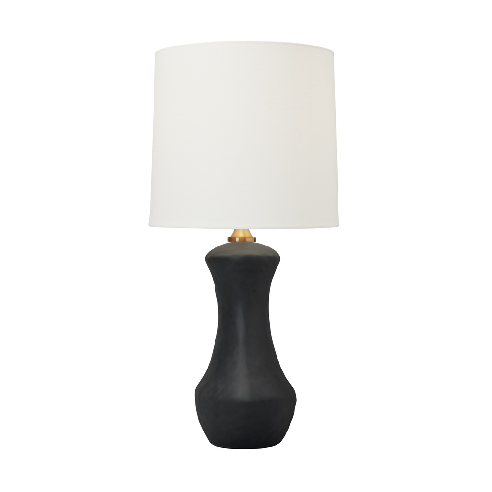 Hand crafted in ceramic the Bone one light table lamp by Hable has a unique shaped base and a black or white finish, making the Bone table lamp an iconic design. Its crisp white shade and brass hardware perfectly accent the delicately detailed art work. Bone offers an enduring presentation of the contemporary form that will competently revitalize your decor space. A white linen shade caps this piece off with an understated style perfect for ensembles from traditional to contemporary.
