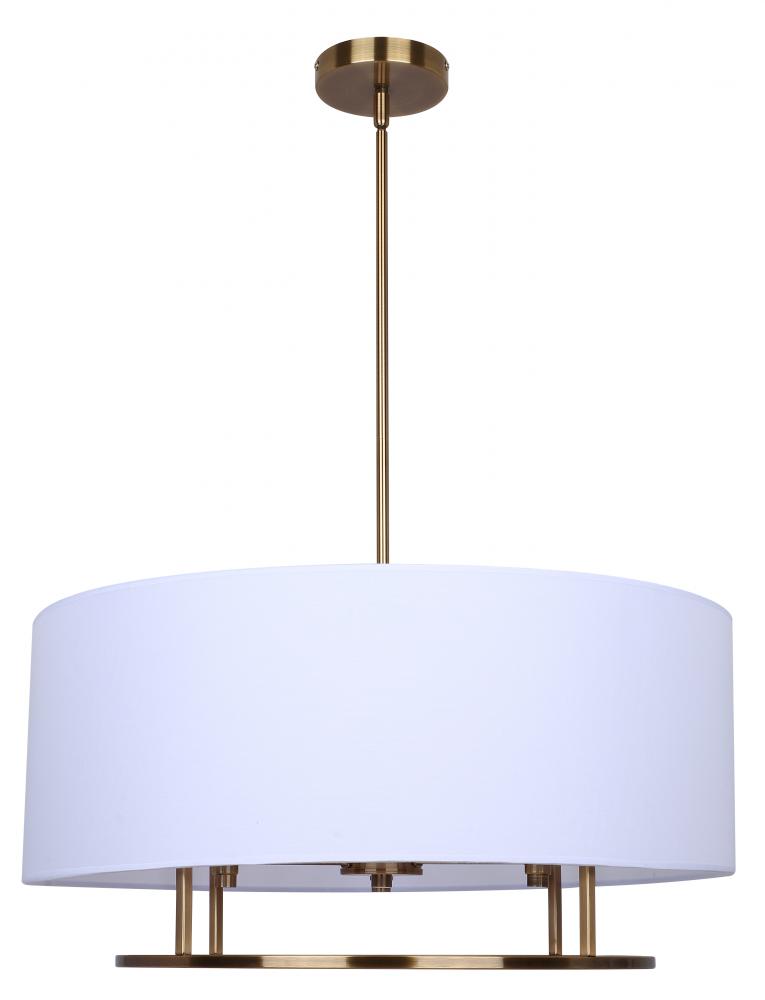 BONNIE, ICH2191B03GD24, 3 Lt 24inch Width Rod Chandelier, White Fabric Shade, 60W Type C, 24inch W x 14.75 - 62.75inch H