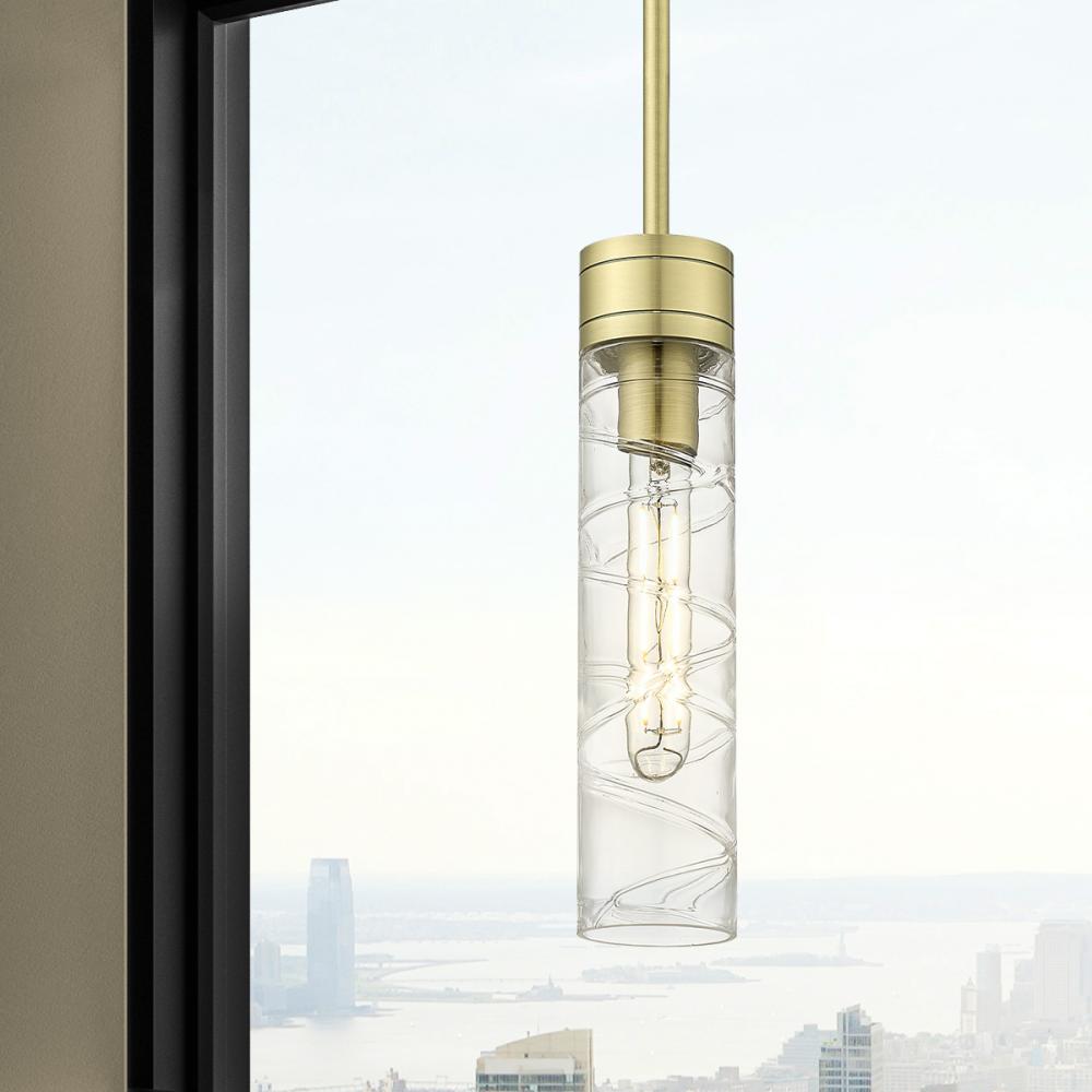 Boreas - 1 Light - 3 inch - Antique Brass - Deco Swirl Shade - Stem Hung - Mini Pendant