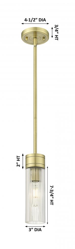 Boreas - 1 Light - 3 inch - Antique Brass - Striped Clear Shade - Stem Hung - Mini Pendant