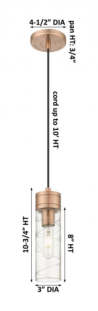 Boreas - 1 Light - 3 inch - Antique Copper - Deco Swirl Shade - Cord Hung - Mini Pendant