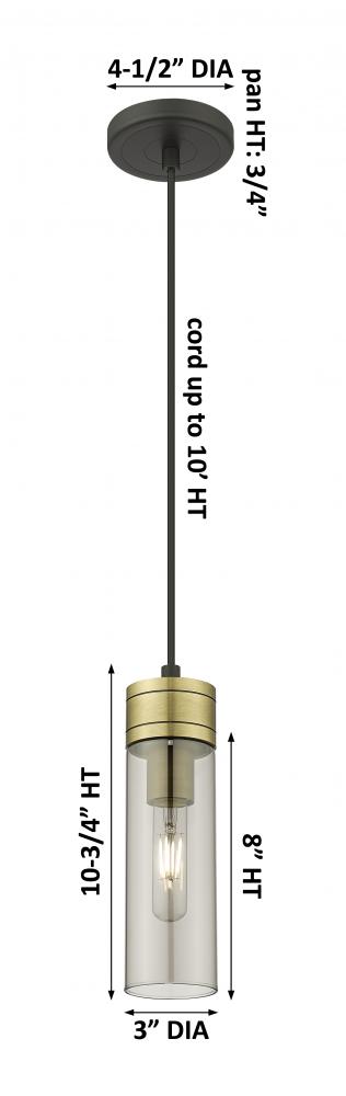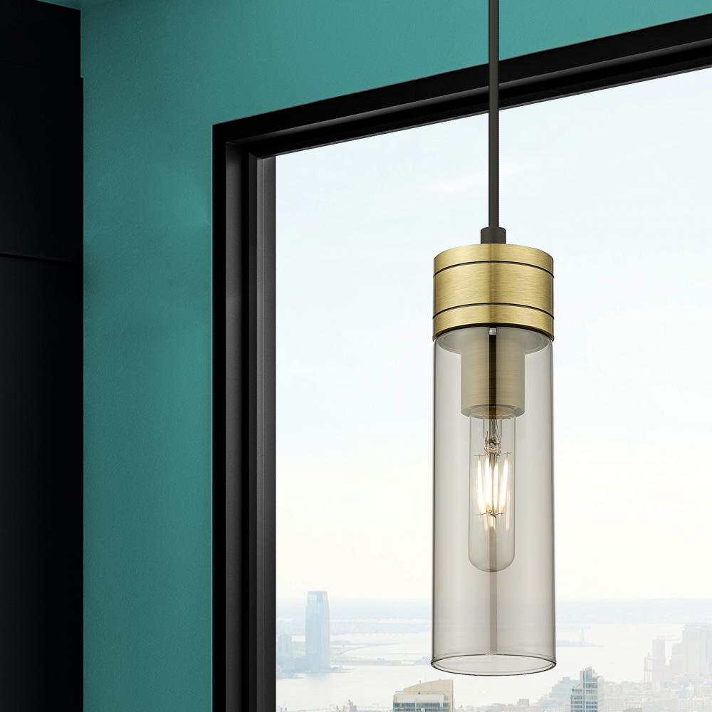 Boreas - 1 Light - 3 inch - Black Antique Brass - Light Smoke Shade - Cord Hung - Mini Pendant