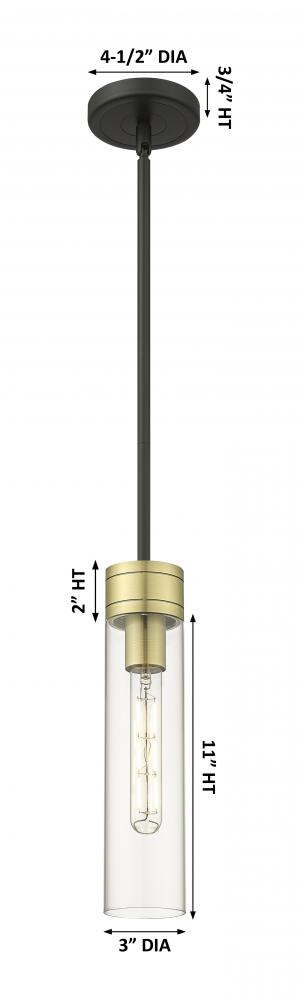Boreas - 1 Light - 3 inch - Black Antique Brass - Clear Shade - Stem Hung - Mini Pendant