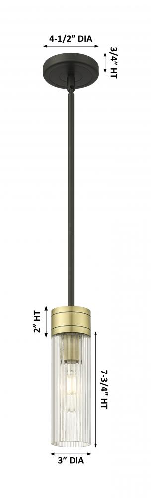 Boreas - 1 Light - 3 inch - Black Antique Brass - Striped Clear Shade - Stem Hung - Mini Pendant