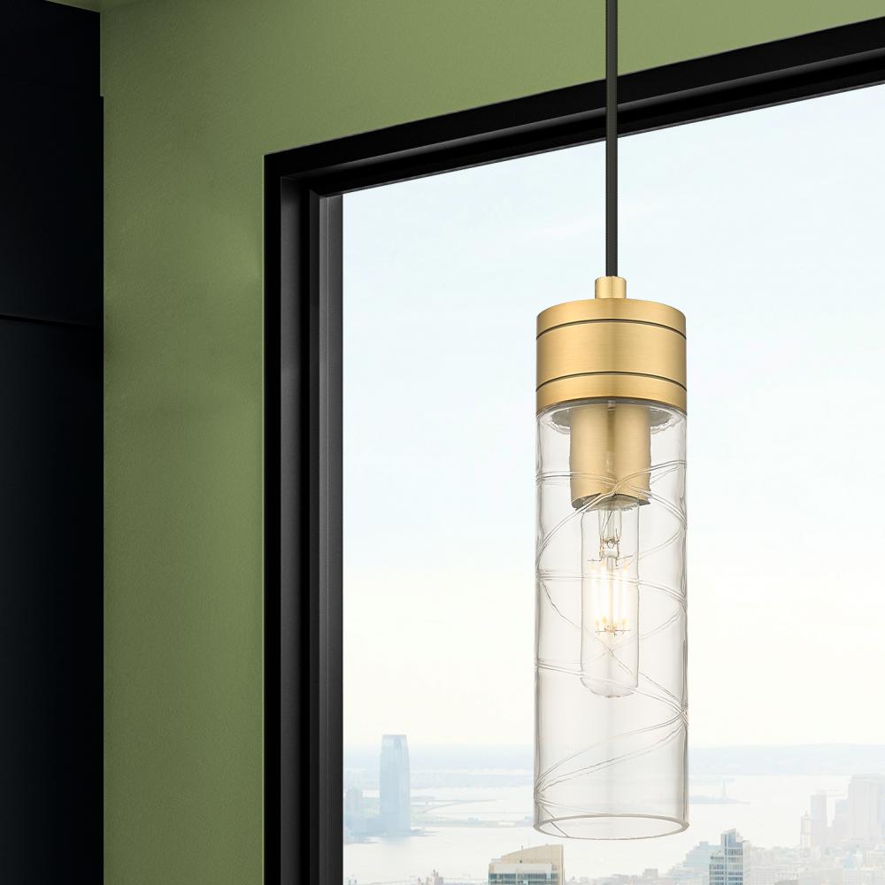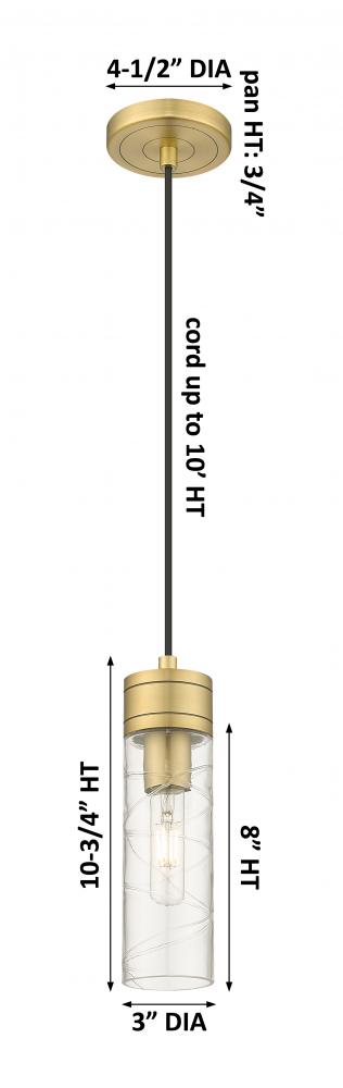 Boreas - 1 Light - 3 inch - Brushed Brass - Deco Swirl Shade - Cord Hung - Mini Pendant