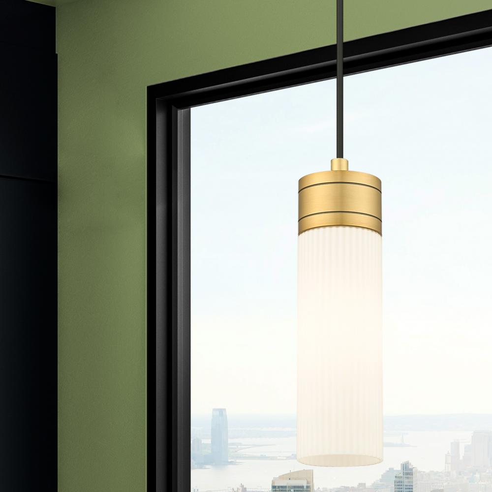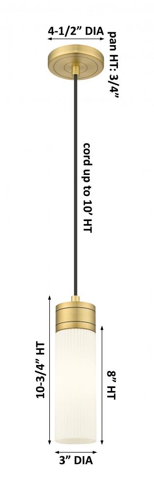Boreas - 1 Light - 3 inch - Brushed Brass - Striped White Shade - Cord Hung - Mini Pendant
