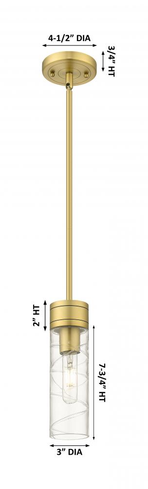 Boreas - 1 Light - 3 inch - Brushed Brass - Deco Swirl Shade - Stem Hung - Mini Pendant