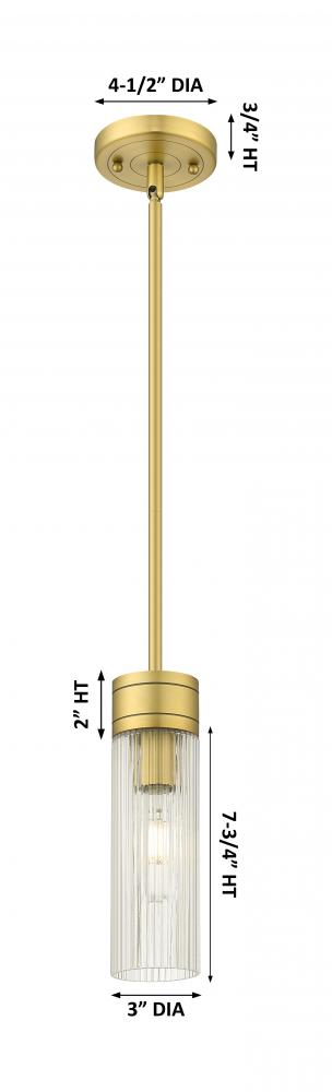 Boreas - 1 Light - 3 inch - Brushed Brass - Striped Clear Shade - Stem Hung - Mini Pendant