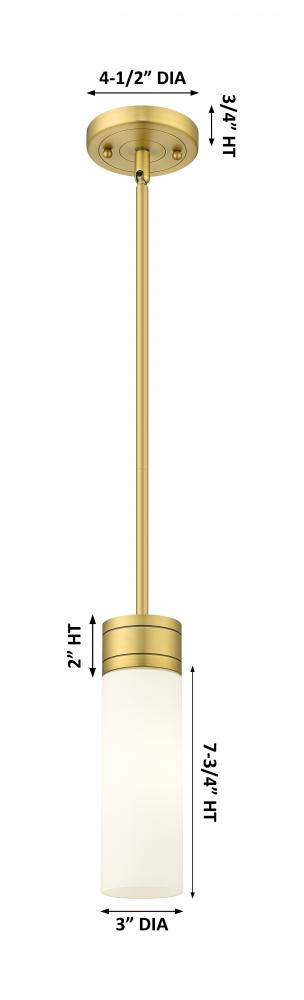 Boreas - 1 Light - 3 inch - Brushed Brass - White Shade - Stem Hung - Mini Pendant