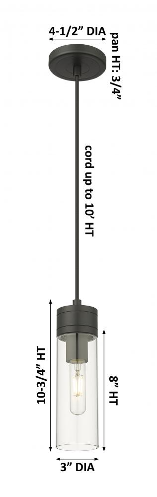 Boreas - 1 Light - 3 inch - Matte Black - Clear Shade - Cord Hung - Mini Pendant