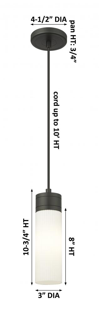 Boreas - 1 Light - 3 inch - Matte Black - Striped White Shade - Cord Hung - Mini Pendant
