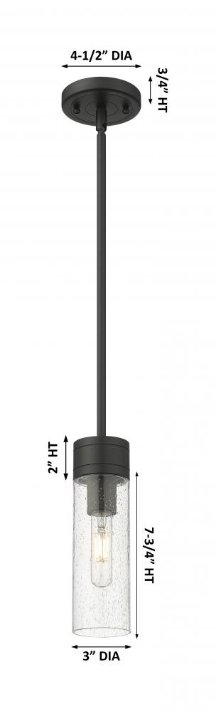 Boreas - 1 Light - 3 inch - Matte Black - Seedy Shade - Stem Hung - Mini Pendant