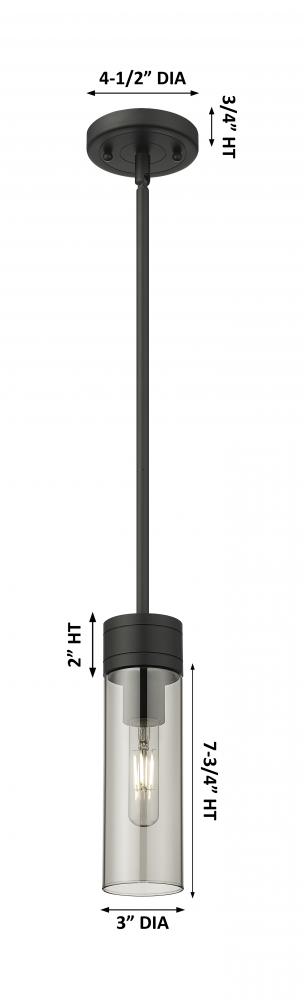 Boreas - 1 Light - 3 inch - Matte Black - Light Smoke Shade - Stem Hung - Mini Pendant