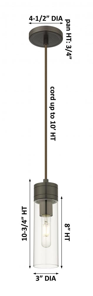 Boreas - 1 Light - 3 inch - Oil Rubbed Bronze - Clear Shade - Cord Hung - Mini Pendant
