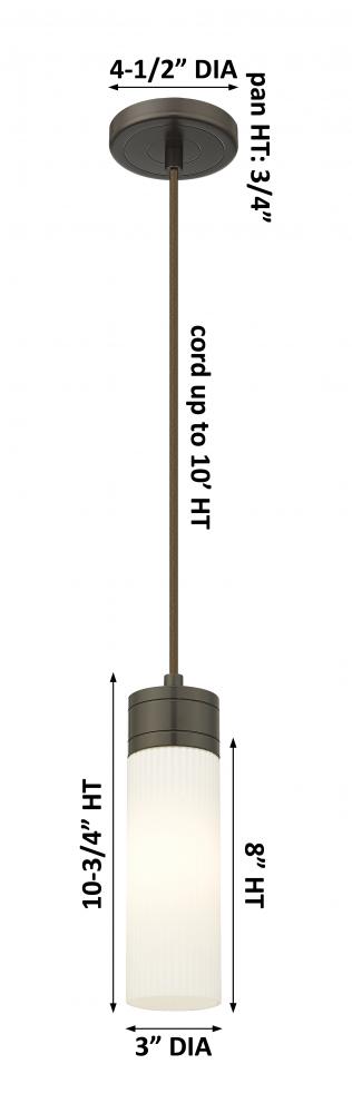 Boreas - 1 Light - 3 inch - Oil Rubbed Bronze - Striped White Shade - Cord Hung - Mini Pendant