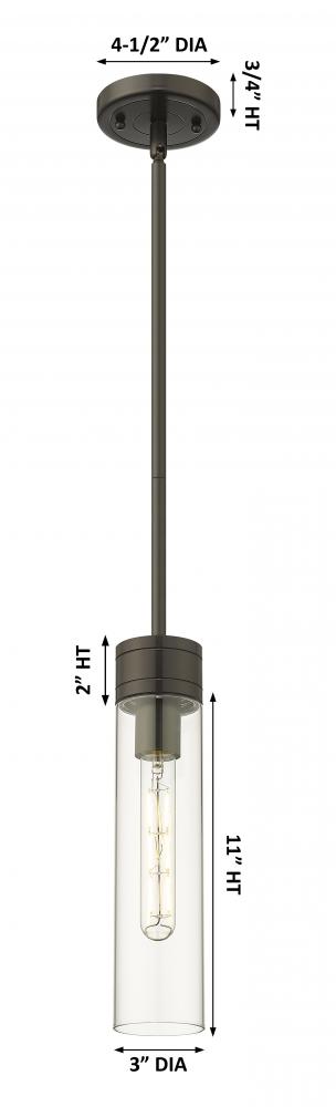 Boreas - 1 Light - 3 inch - Oil Rubbed Bronze - Clear Shade - Stem Hung - Mini Pendant
