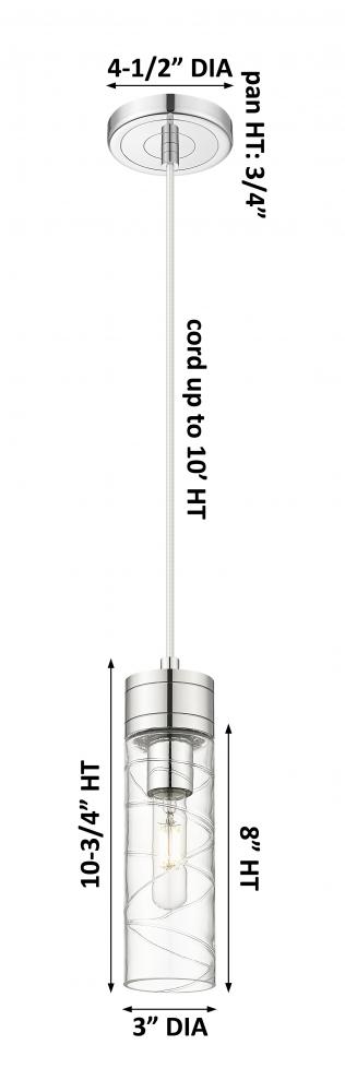 Boreas - 1 Light - 3 inch - Polished Chrome - Deco Swirl Shade - Cord Hung - Mini Pendant