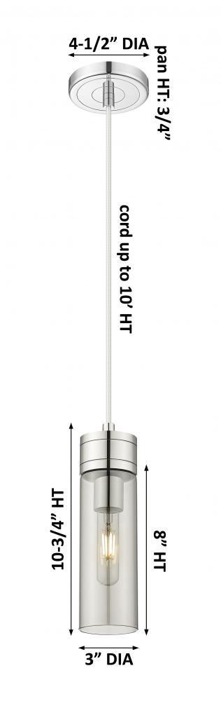 Boreas - 1 Light - 3 inch - Polished Chrome - Light Smoke Shade - Cord Hung - Mini Pendant