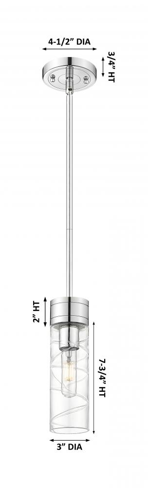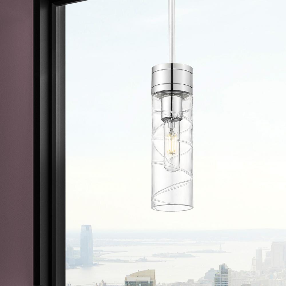 Boreas - 1 Light - 3 inch - Polished Chrome - Deco Swirl Shade - Stem Hung - Mini Pendant