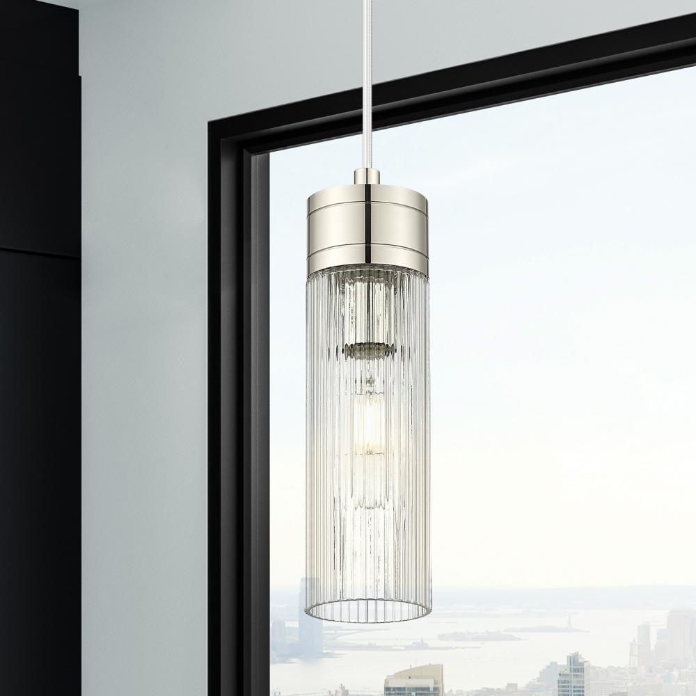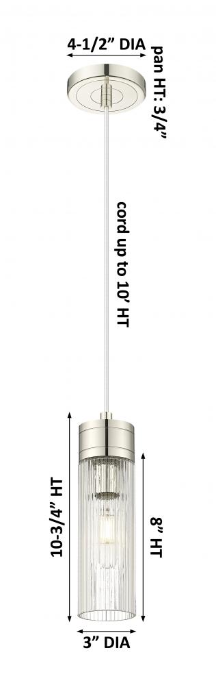 Boreas - 1 Light - 3 inch - Polished Nickel - Striped Clear Shade - Cord Hung - Mini Pendant