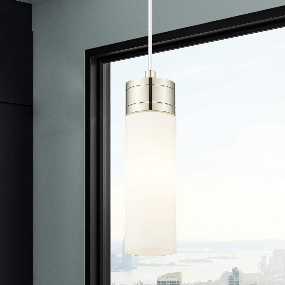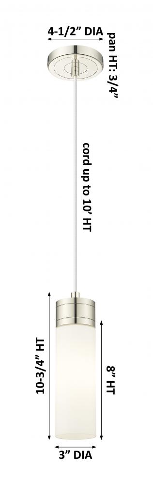 Boreas - 1 Light - 3 inch - Polished Nickel - White Shade - Cord Hung - Mini Pendant