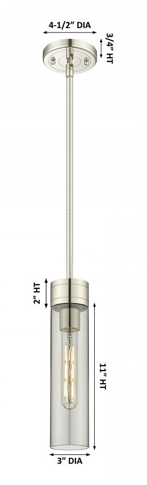 Boreas - 1 Light - 3 inch - Polished Nickel - Stem Hung - Mini Pendant