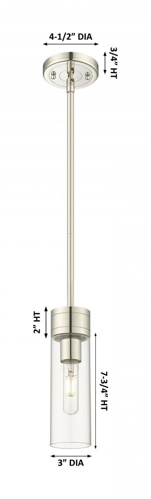 Boreas - 1 Light - 3 inch - Polished Nickel - Clear Shade - Stem Hung - Mini Pendant