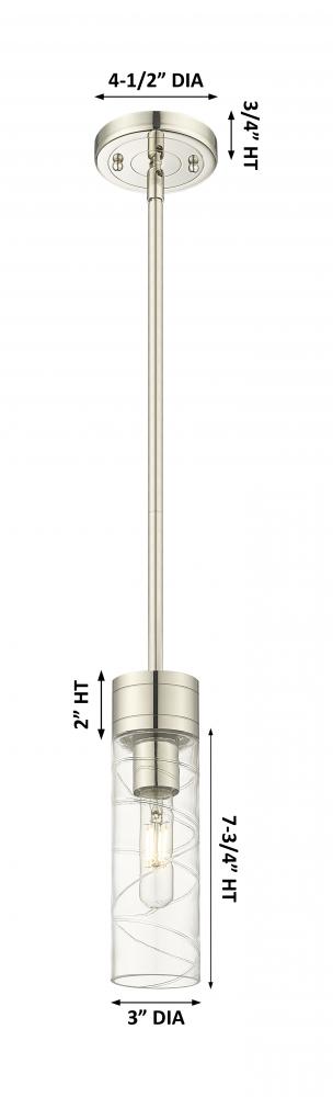 Boreas - 1 Light - 3 inch - Polished Nickel - Stem Hung - Mini Pendant