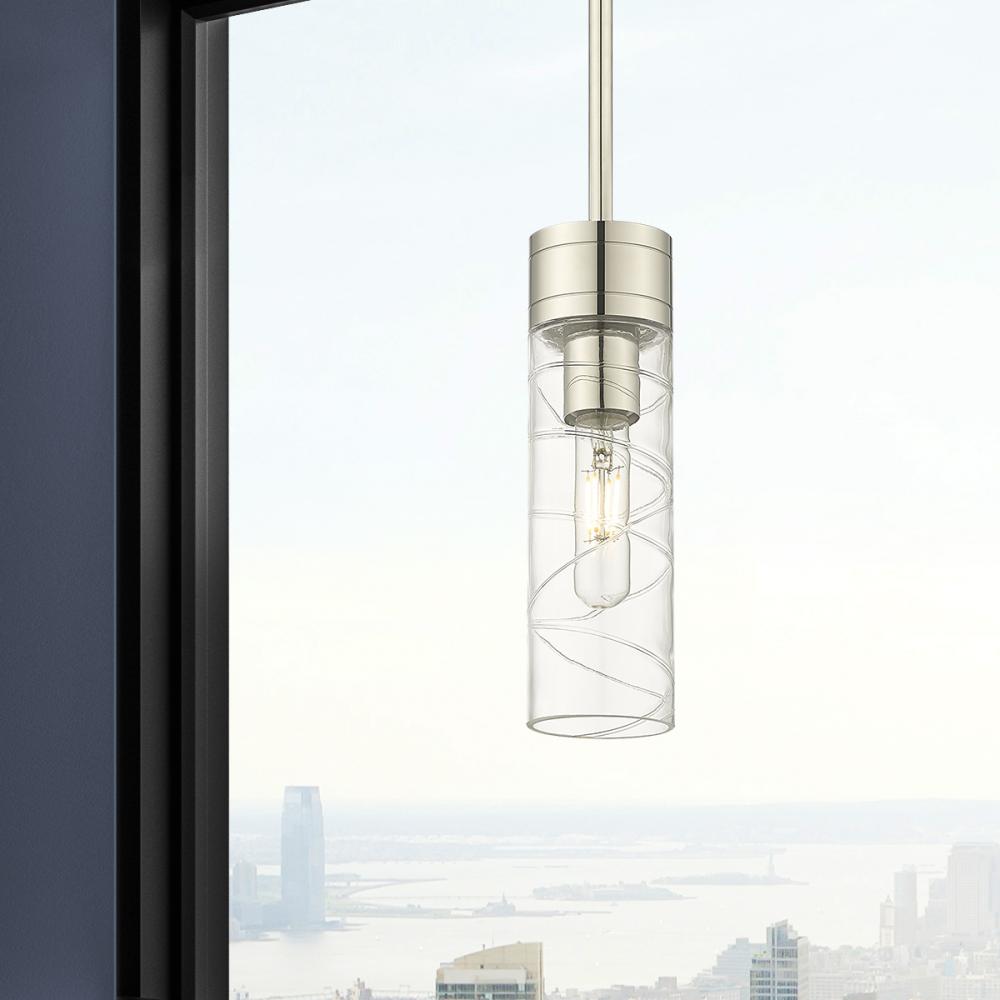Boreas - 1 Light - 3 inch - Polished Nickel - Deco Swirl Shade - Stem Hung - Mini Pendant