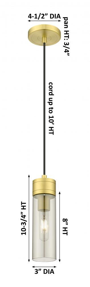 Boreas - 1 Light - 3 inch - Satin Gold - Light Smoke Shade - Cord Hung - Mini Pendant