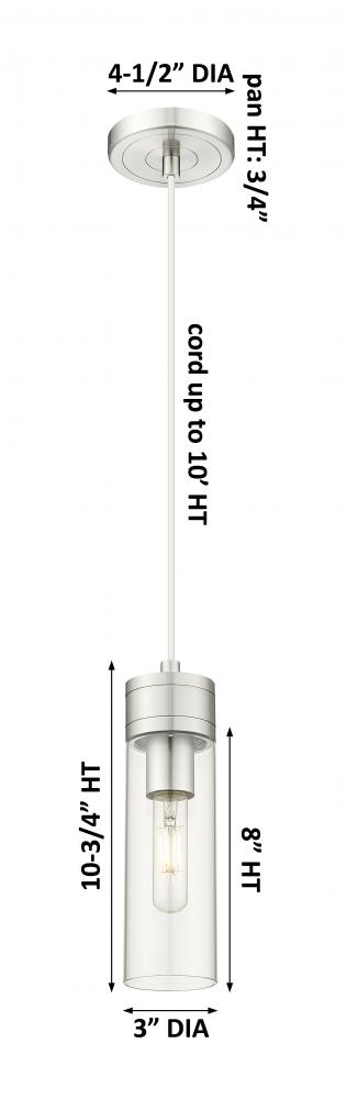 Boreas - 1 Light - 3 inch - Satin Nickel - Clear Shade - Cord Hung - Mini Pendant
