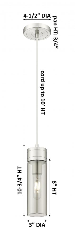 Boreas - 1 Light - 3 inch - Satin Nickel - Cord Hung - Mini Pendant