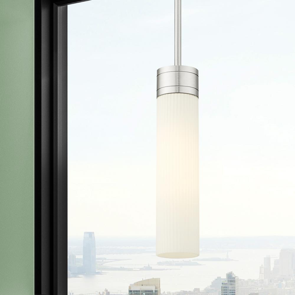 Boreas - 1 Light - 3 inch - Satin Nickel - Striped White Shade - Stem Hung - Mini Pendant