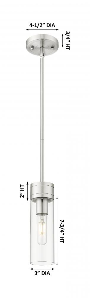 Boreas - 1 Light - 3 inch - Satin Nickel - Clear Shade - Stem Hung - Mini Pendant