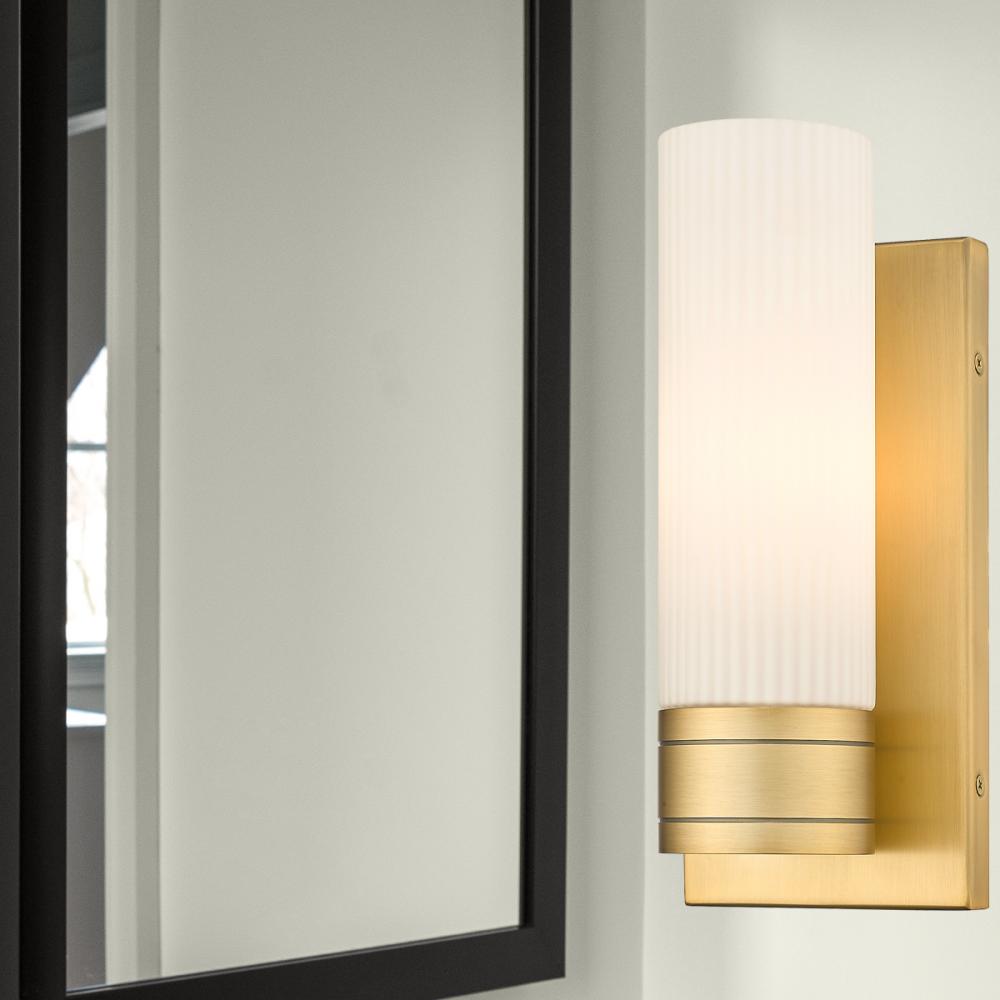 Boreas - 1 Light - 5 inch - Brushed Brass - Striped White Shade - Sconce