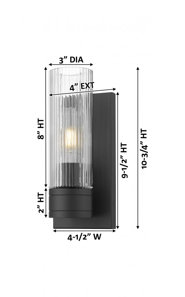 Boreas - 1 Light - 5 inch - Matte Black - Striped Clear Shade - Sconce