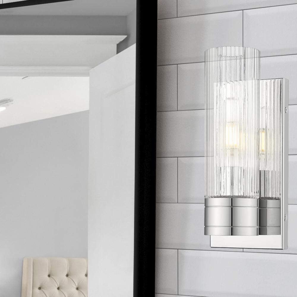 Boreas - 1 Light - 5 inch - Polished Chrome - Striped Clear Shade - Sconce