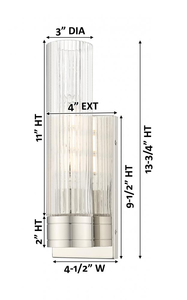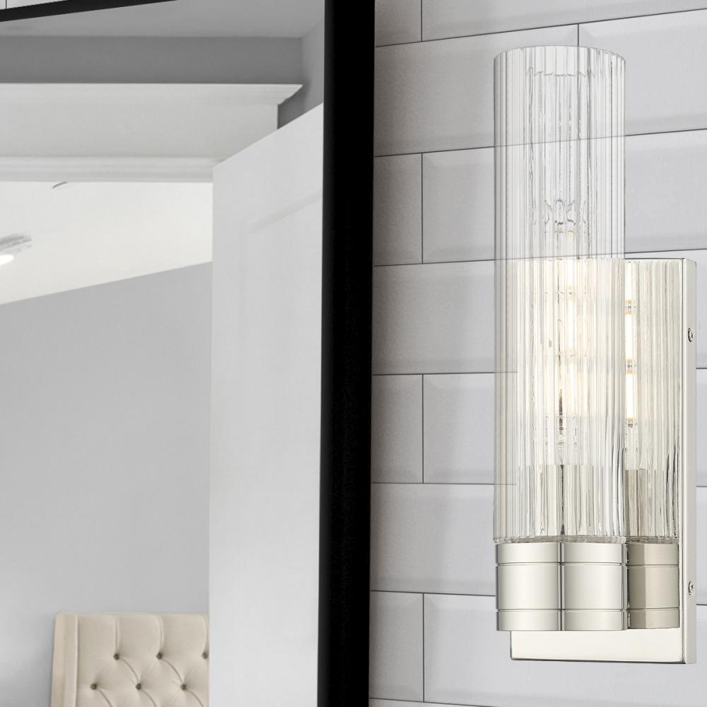 Boreas - 1 Light - 5 inch - Polished Nickel - Striped Clear Shade - Sconce