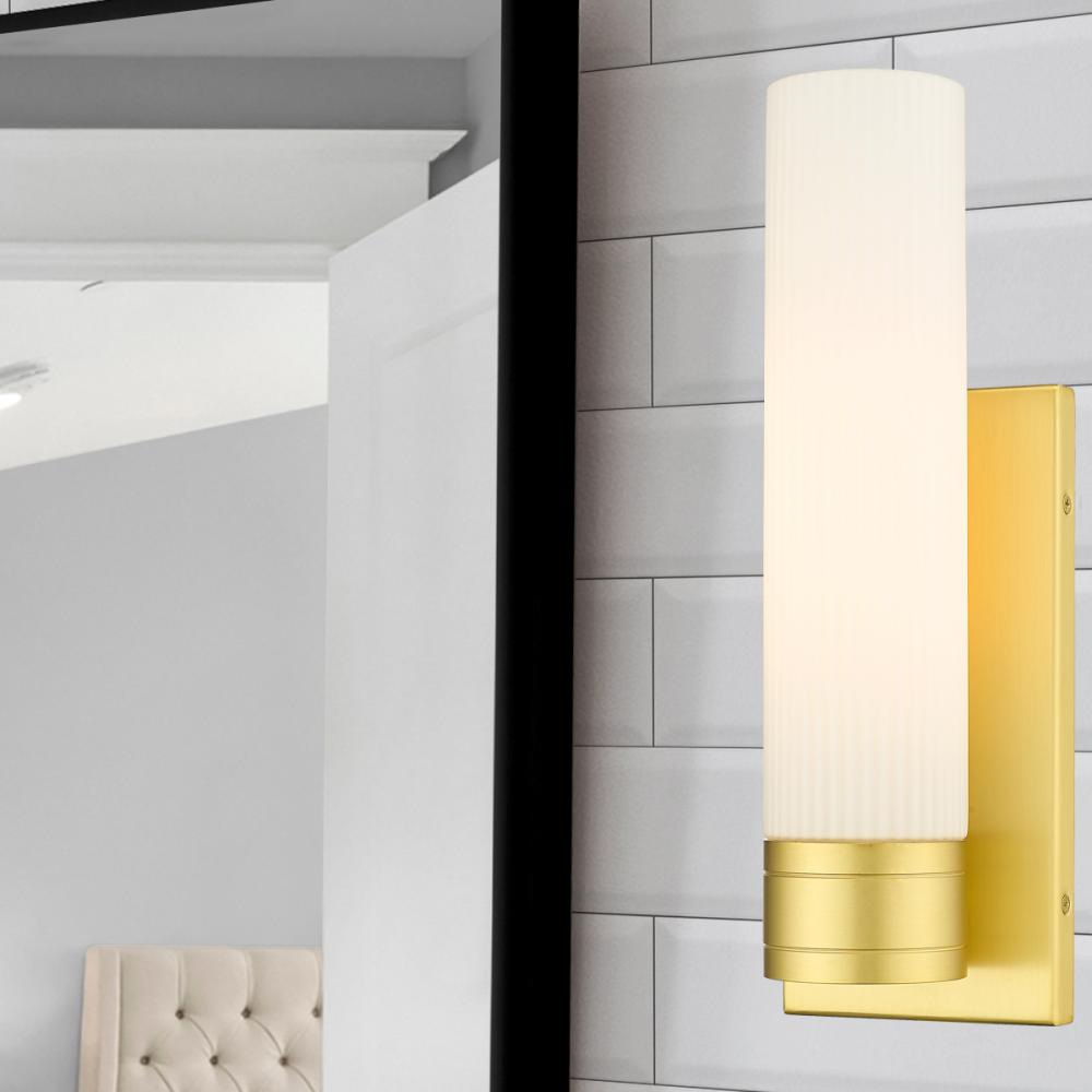 Boreas - 1 Light - 5 inch - Satin Gold - Striped White Shade - Sconce