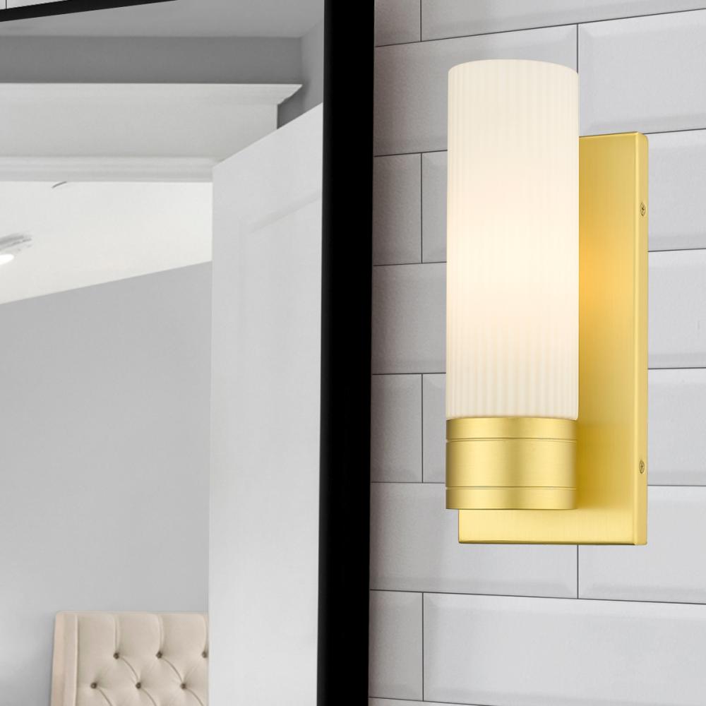 Boreas - 1 Light - 5 inch - Satin Gold - Striped White Shade - Sconce