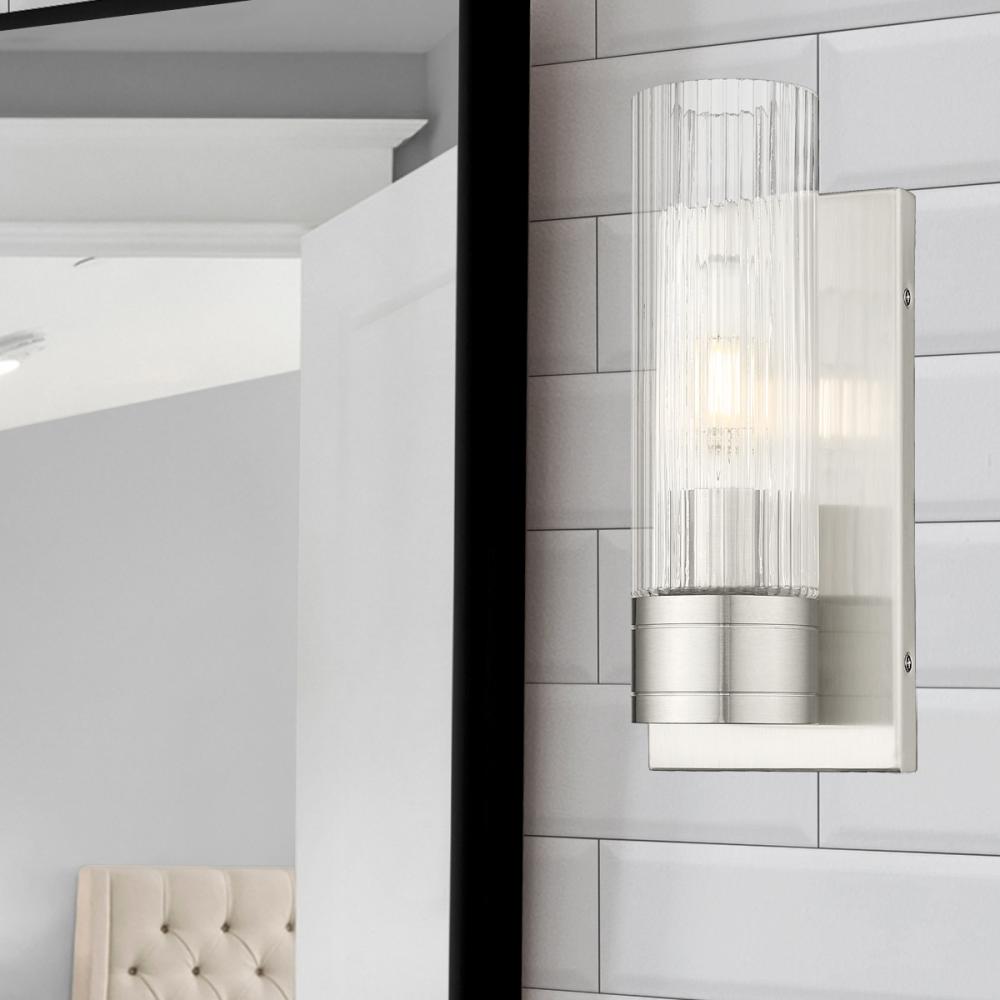 Boreas - 1 Light - 5 inch - Satin Nickel - Striped Clear Shade - Sconce
