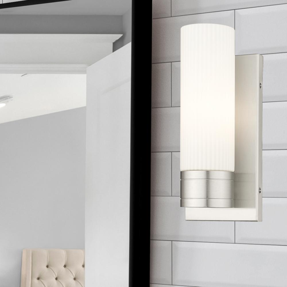 Boreas - 1 Light - 5 inch - Satin Nickel - Striped White Shade - Sconce