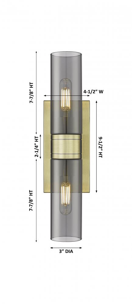 Boreas - 2 Light - 18 inch - Antique Brass - Light Smoke Shade - Bath Vanity Light