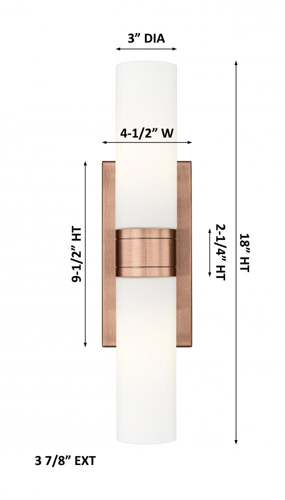 Boreas - 2 Light - 18 inch - Antique Copper - White Shade - Bath Vanity Light
