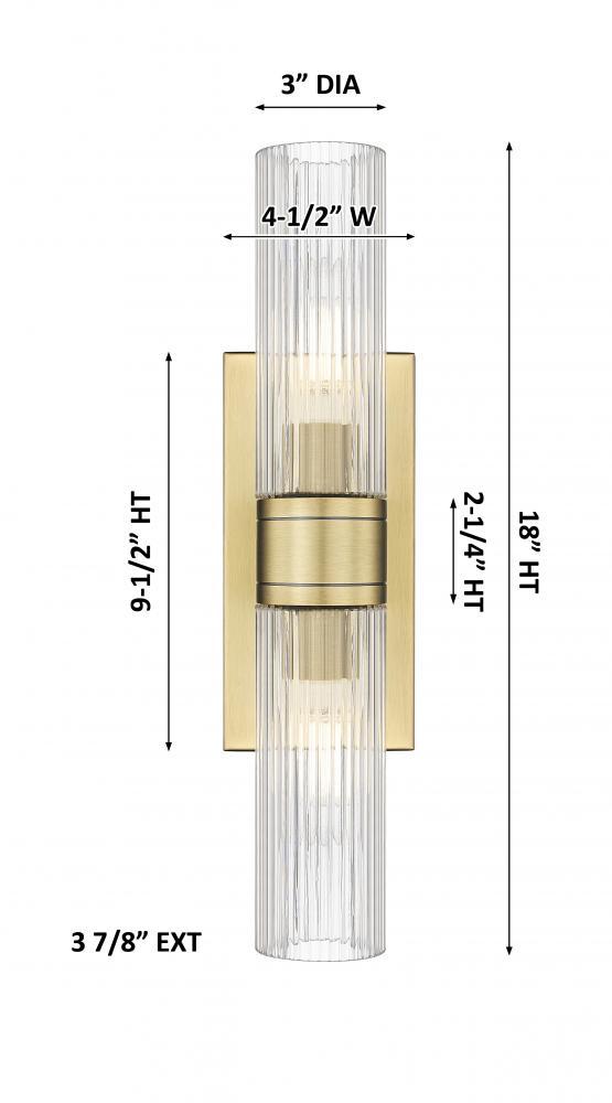 Boreas - 2 Light - 18 inch - Brushed Brass - Bath Vanity Light