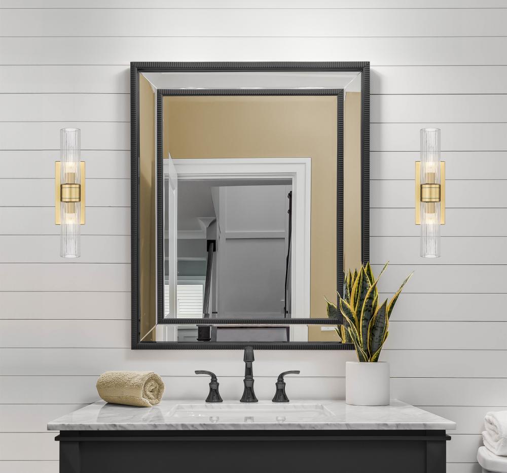 Boreas - 2 Light - 18 inch - Brushed Brass - Striped Clear Shade - Bath Vanity Light